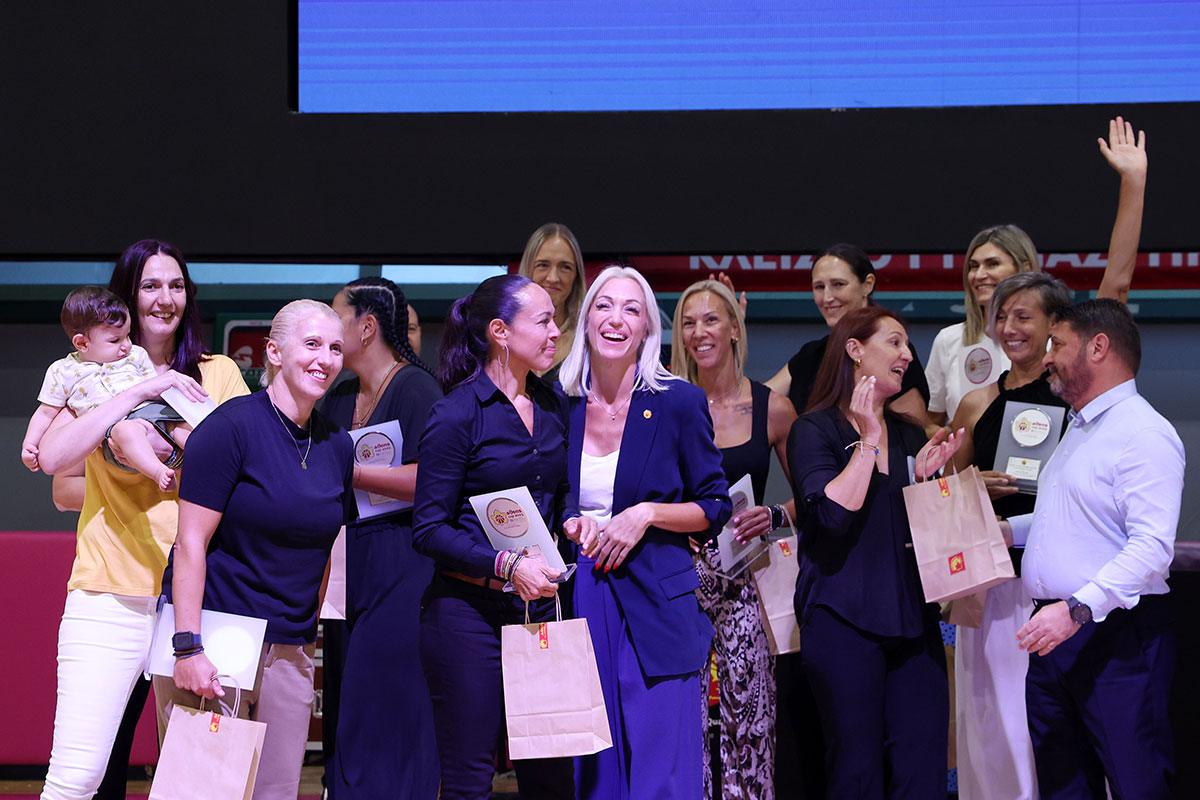 Τα μέλη της Διοικούσας Επιτροπής, Κώστας Κρατημένος, Κώστας Πετρόπουλος και Δημήτρης Ταραζόνας, oι τότε αθλήτριες, Δήμητρα Καλέντζου, Λολίτα Λύμουρα, Όλγα Χατζηνικολάου, Βίκυ Βολωνάκη, Gintare Petronyte, Πόλυ Σαρέγκου, Ζωή Κεχαγιά, Αφροδίτη Κοσμά, Κατερίνα Χαλικιά, Βάγια Μερισιώτη, Ruth Riley Hunter και Irena Vizbariene.