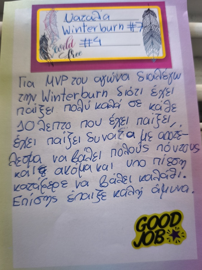 Έρχεται η εποχή του silent night, holly night, και χθες ήταν η βραδιά της Holly να κάνει θόρυβο. Με 14 πόντους, δέκα ασίστ και ένα επιθετικό ξέσπασμα στο τρίτο δεκάλεπτο οδήγησε τον Αθηναϊκό Qualco στη νίκη απέναντι στην Hozono Global Jairis και αναδείχθηκε MVP από τις ακαδημίες μας, με την Μαριλένα να είναι η αθλήτρια που της παρέδωσε το δώρο και έβγαλε μαζί της την αναμνηστική φωτογραφία.