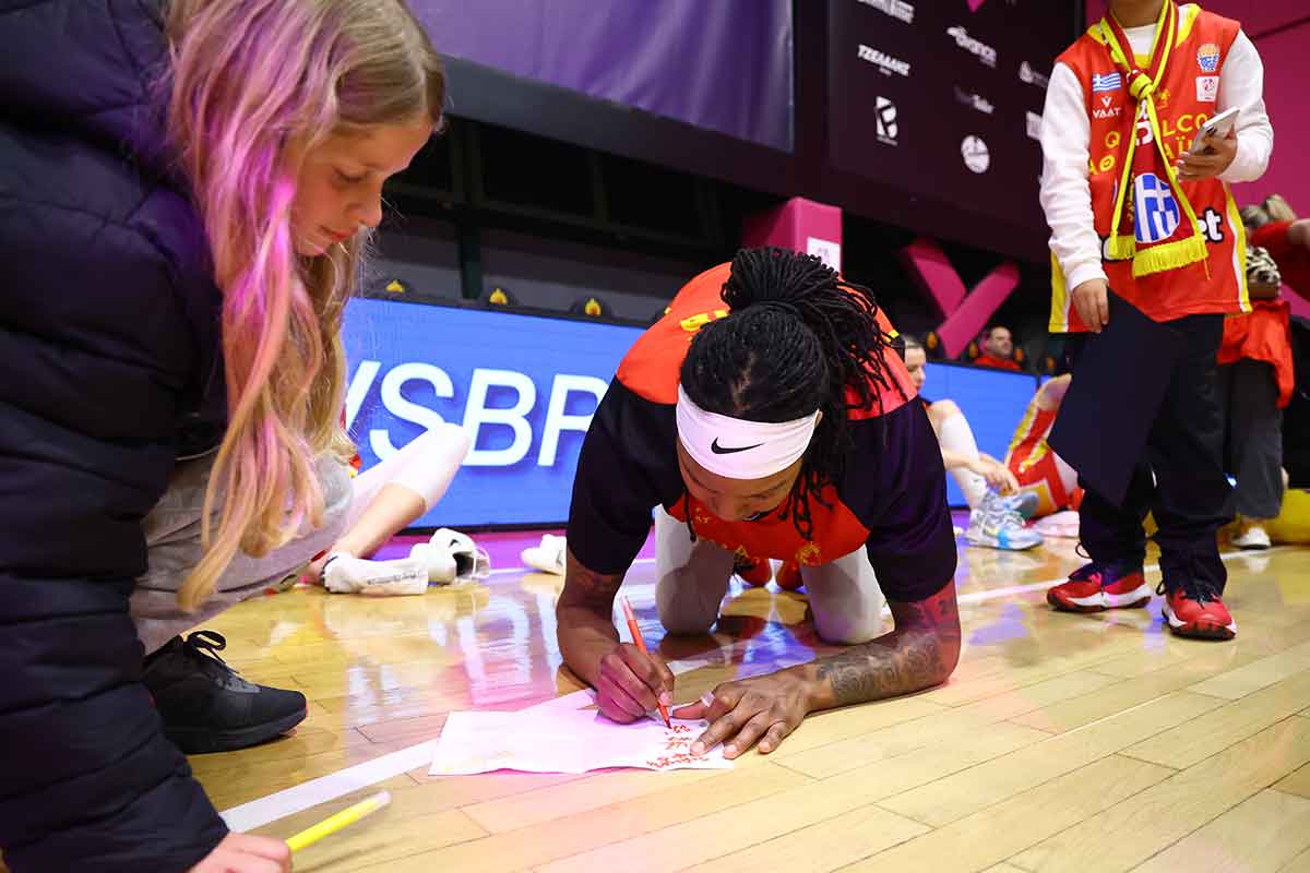 Η μεγαλειότητα είναι στην ταπεινότητα. Η φωτογραφία δείχνει την Ρόμπιν Παρκς να υπογράφει πάνω στο παρκέ και είναι μία από τις πολλές εκείνης της ημέρας. Οι παίκτριες δέχτηκαν επίθεση αγάπης από τα παιδιά των ακαδημιών μας και οι ίδιες από την πλευρά τους με υπομονή, αγάπη και απόλυτα θετική διάθεση έκατσαν και υπόγραψαν αυτόγραφα, έβγαλαν φωτογραφίες και ολοκλήρωσαν μια πολύ όμορφη βραδιά έπειτα από τον πρώτο ημιτελικό απέναντι στην Βιλνέβ.