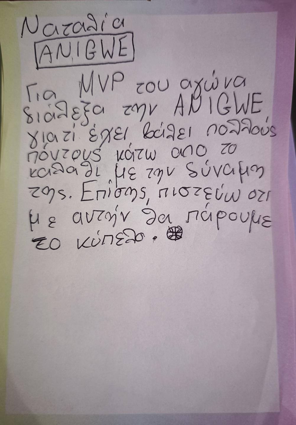 Η ψηφοφορία θα μπορούσε να είχε λήξει στο πρώτο δεκάλεπτο και πάλι το ίδιο αποτέλεσμα θα έβγαινε. Η Ρόμπιν Παρκς ήταν καθηλωτική σε εκείνο το διάστημα, παρέμεινε θετική σε όλη τη διάρκεια του αγώνα και για δεύτερη φορά τη φετινή σεζόν αναδεικνύει πολυτιμότερη παίκτρια των ακαδημιών μας. Η νατουραλιζέ γκαρντ είχε 14 πόντους σε 23 λεπτά συμμετοχής, και επίσης τέσσερα ριμπάουντ, δύο ασίστ και δύο κλεψίματα με 7/11 σουτ συνολικά.