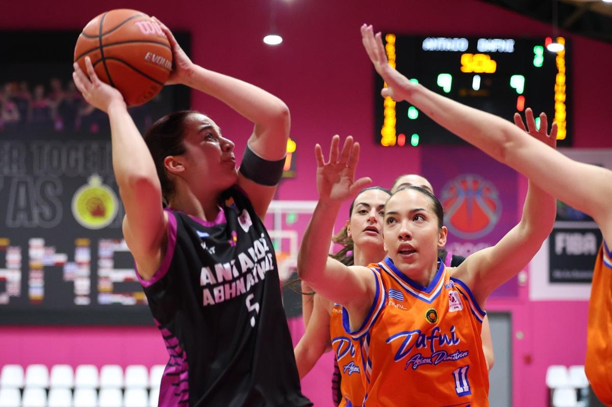 Στο πρώτο δεκάλεπτο του ματς, η Δανάη Γοργογιάννη ξεκίνησε με φόρα για να πετύχει οκτώ πόντους, σχεδόν το 50% όσων είχε πετύχει συνολικά ο Ανταίος (σ.σ. 18-13). Η U23 αναπτυξιακή ομάδα του Αθηναϊκού κατάφερε να δώσει το δικό της ρυθμό στο ματς, να φτάσει στο +11 (28-17) για να έρθει ένα σερί 7-0 της Δάφνης να μειώσει στο 28-24. Ένα τρίποντο της Έλενας Αγκάι έδωσε την ανάσα για το 31-24 και οι δύο ομάδες πήγαν στα αποδυτήρια με το σκορ στο 35-30.