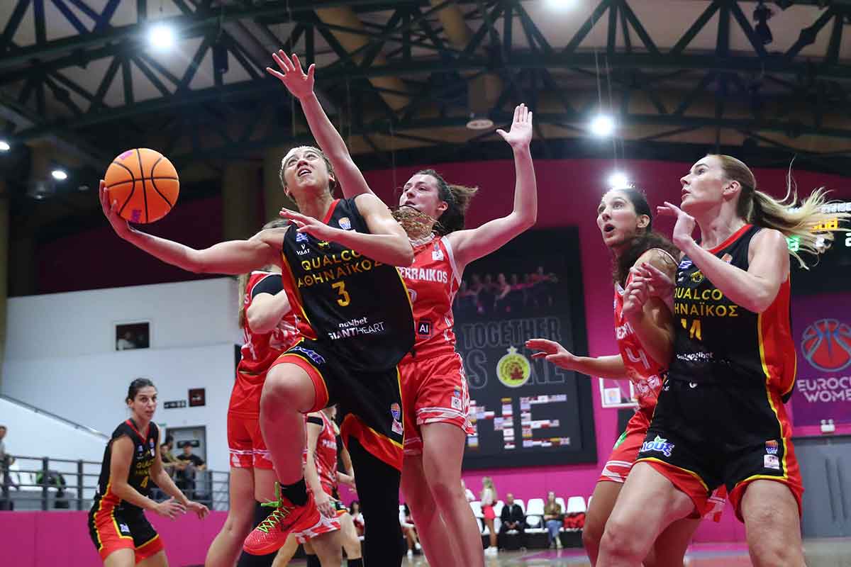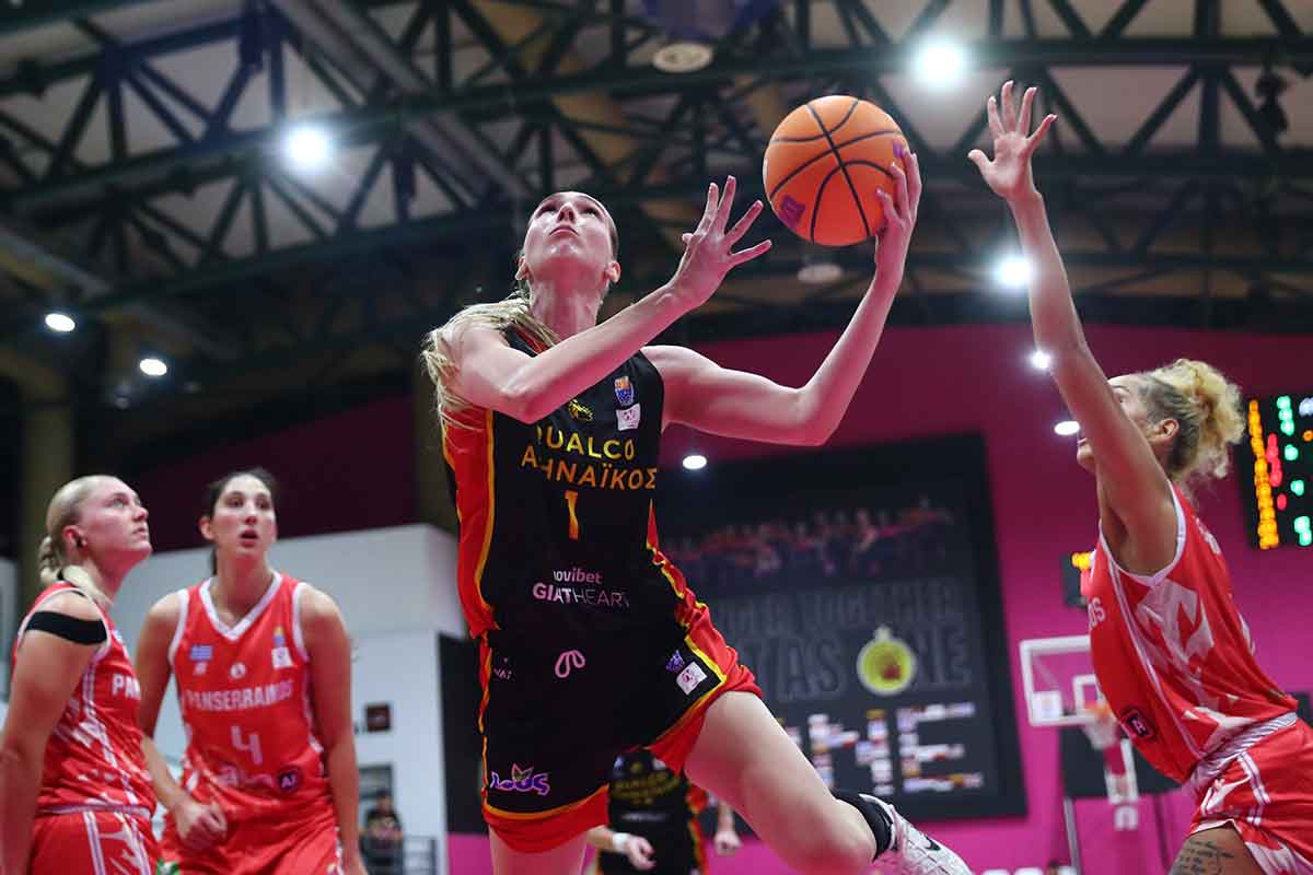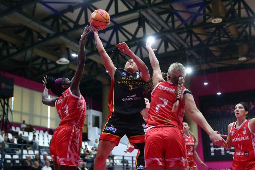 Από εκεί που σταμάτησε στην Γαλλία, από εκεί ακριβώς ξεκίνησε απέναντι στον Πανσερραϊκό. Με την Alexis Prince να σκοράρει έξω από τα 6μ.75 για το 3-0 και να ηγείται του Αθηναϊκού Qualco στο ξεκίνημα του ματς με δέκα πόντους για να το πρώτο ξεκάθαρο προβάδισμα στο παιχνίδι (14-8). Οι φιλοξενούμενες αντέδρασαν άμεσα και κατάφεραν με επιμέρους σκορ 2-8 να μειώσουν σε 16-14 και να αναγκάσουν την ομάδα να ανεβάσει ταχύτητα και με πιεστική άμυνα να τρέξει το δικό της σερί και να χτίσει διαφορά στο ματς. Αρχικά με το 7-0 να προηγηθεί 23-14 και ακολούθως για τη μεγαλύτερη διαφορά στο πρώτο ημίχρονο με το 31-18 για να κλείσει το ημίχρονο στο 40-31.