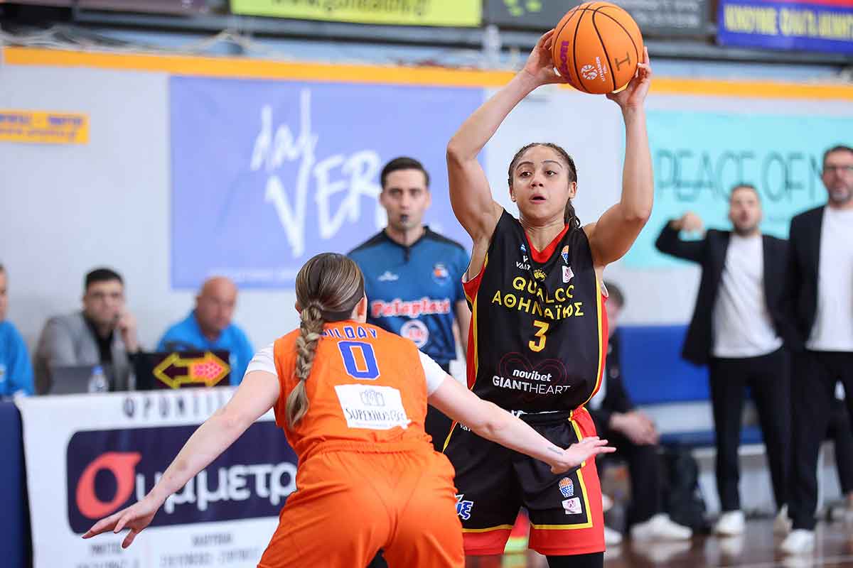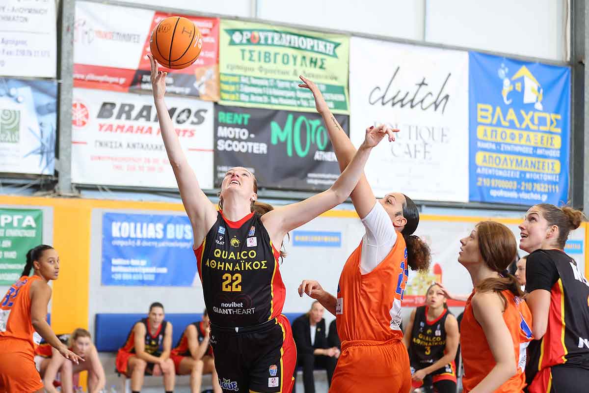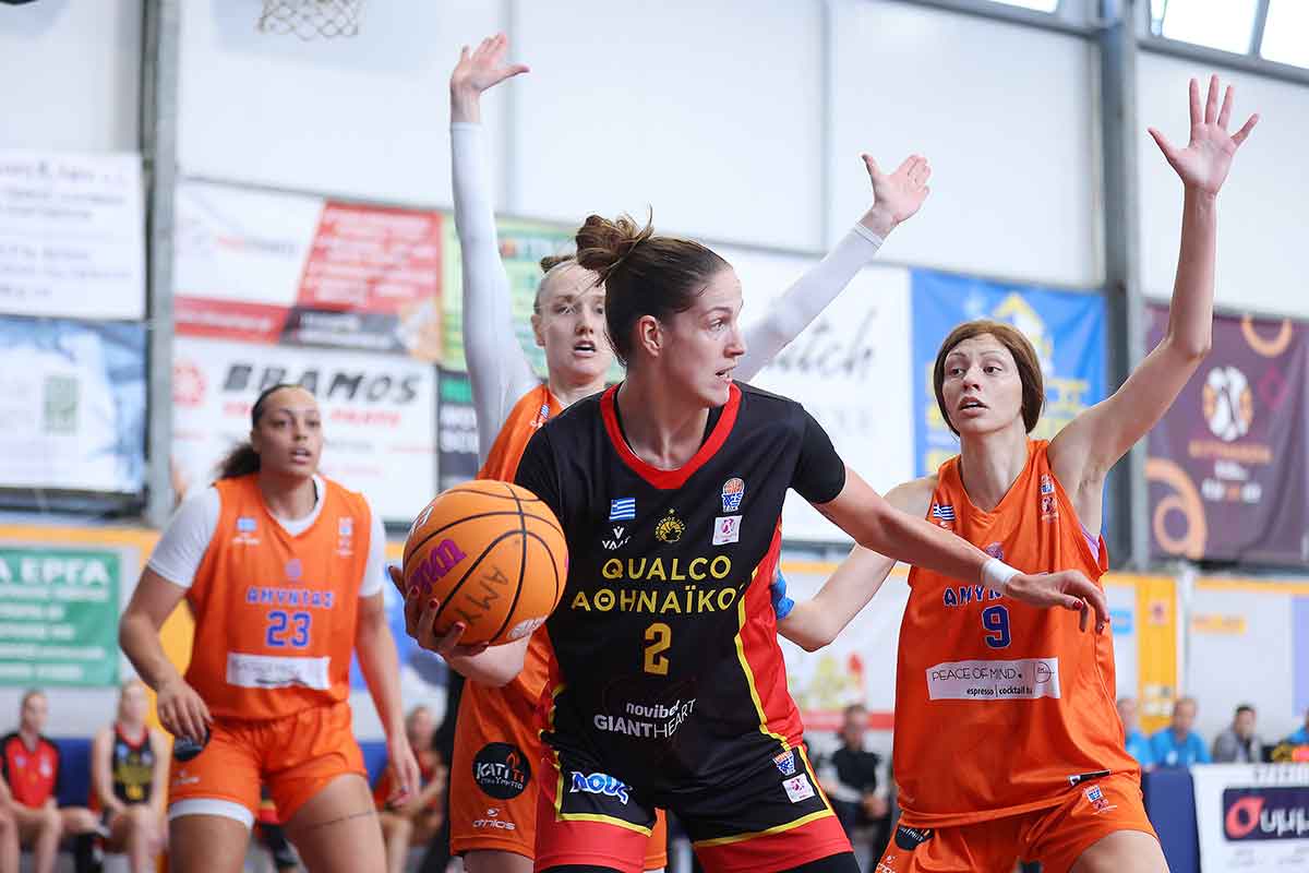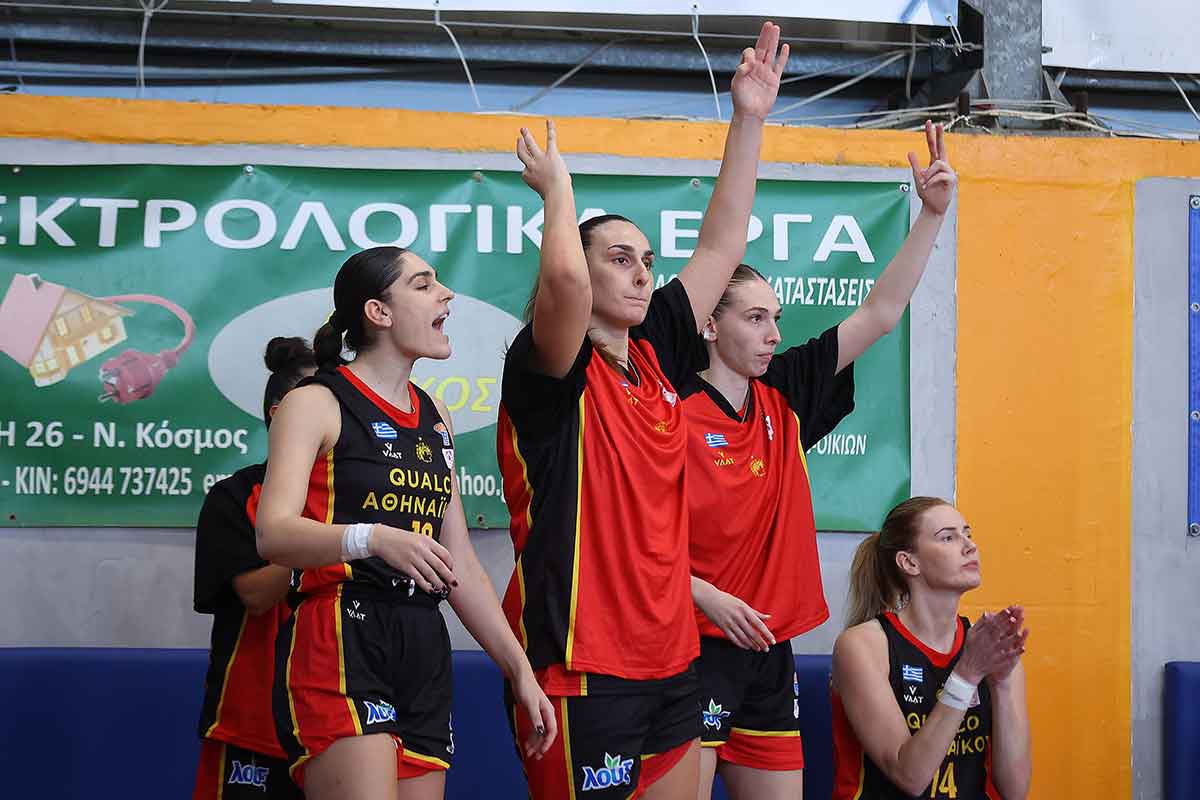 Ένα γρήγορο 7-0 στο ξεκίνημα του δευτέρου ημιχρόνου έφερε τη διαφορά ξανά πάνω από τους είκοσι πόντους, με την άμυνα με επιθετικές αλλαγές πάνω στην Γκιλντέι να περιορίζει τη δράση της και να μπλοκάρει τον Αμύντα επιθετικά. Ο Αθηναϊκός Qualco δέχτηκε μόλις 13 πόντους στο τρίτο δεκάλεπτο και κατάφερε να είναι στο 30′ μπροστα με 40-65. Η διαφορά παρέμεινε σε τέτοια επίπεδα μέχρι και το φινάλε του ματς, με το τελικό 55-79 να φέρνει το ρεκόρ της ομάδας μας στο 3-1.