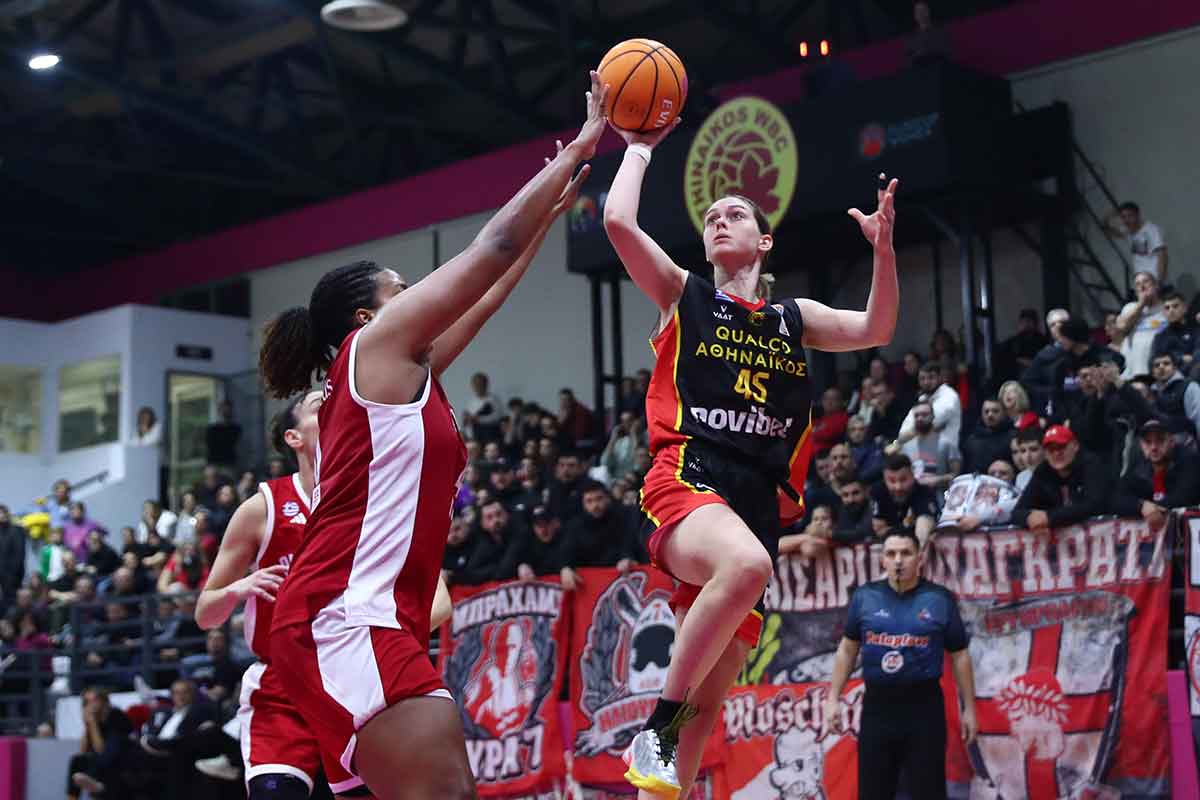 Eκεί ήταν και η ώρα της Prince και της Parks να… τελειώσουν το ματς έξω από τα 6μ.75. Ο Ολυμπιακός μείωσε σε 61-55, ωστόσο η Αμερικανίδα με σπουδαίο τρίποντο έδωσε λύση για το 64-55 και πλέον ήταν θέμα διαχείρισης. Ο Ολυμπιακός κατάφερε να μειώσει στους τρεις πόντους, με τις Νικολοπούλου και Χριστινάκη να βγαίνουν μπροστά και εκεί ήταν και πάλι η ώρα της Άνα Τάντιτς! Με τέσσερις συνεχόμενους πόντους έστειλε την ομάδα μας στο +7 με 2.42 να απομένουν για την σπουδαία πρόκριση. Η απέλπιδα προσπάθεια των φιλοξενούμενων που έφτασαν εκ νέου στο -6 βρήκε στο… τείχος της Robyn Parks, η οποία με καθοριστικό τρίποντο «κλείδωσε» τη νίκη για τον Αθηναϊκό Qualco και τον έστειλε έπειτα από οκτώ χρόνια ξανά σε φάιναλ φορ.