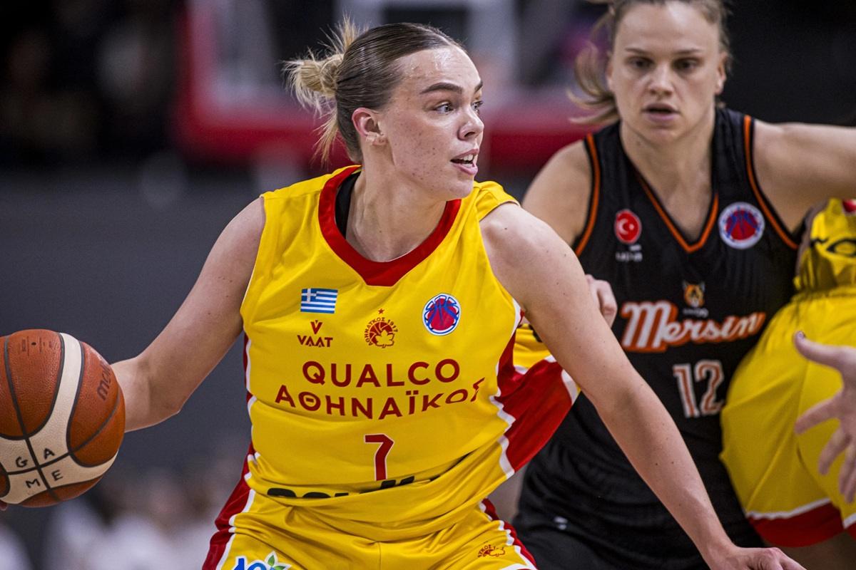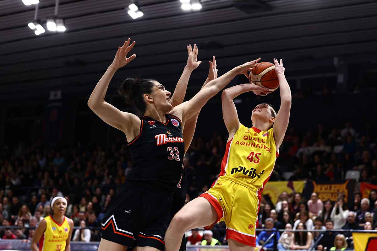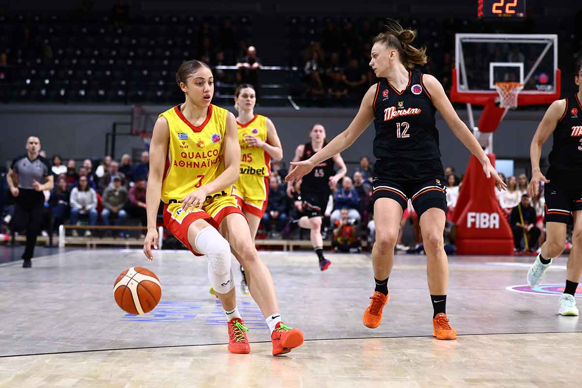 Το πρώτο δεκάλεπτο είναι εκείνο που θα κουβαλάει στην… καμπούρα του για μια εβδομάδα ο Αθηναϊκός Qualco. Η Μερσίν έμοιαζε να τα κάνει όλα ιδανικά στο ξεκίνημα του ματς, όμως η αλήθεια είναι ότι βρήκε και τα έκανε, αφού η ομάδα μας άργησε να μπει στο πνεύμα και τις απαιτήσεις του αγώνα. Από το -13 του δεκαλέπτου και αργότερα το -17 λίγο μετά την έναρξη του δευτέρου συνήλθε και έφτασε να διεκδικεί τη νίκη, ωστόσο ο ρεαλιστικός αριθμός ήταν ότι κυνηγούσε στο σκορ επί 38 λεπτά και 50 δευτερόλεπτα. Καταλυτική η παρουσία της Κένεντι Μπερκ με 25 πόντους, 5/8 δίποντα, 5/8 τρίποντα, εννέα ριμπάουντ και δύο κλεψίματα.