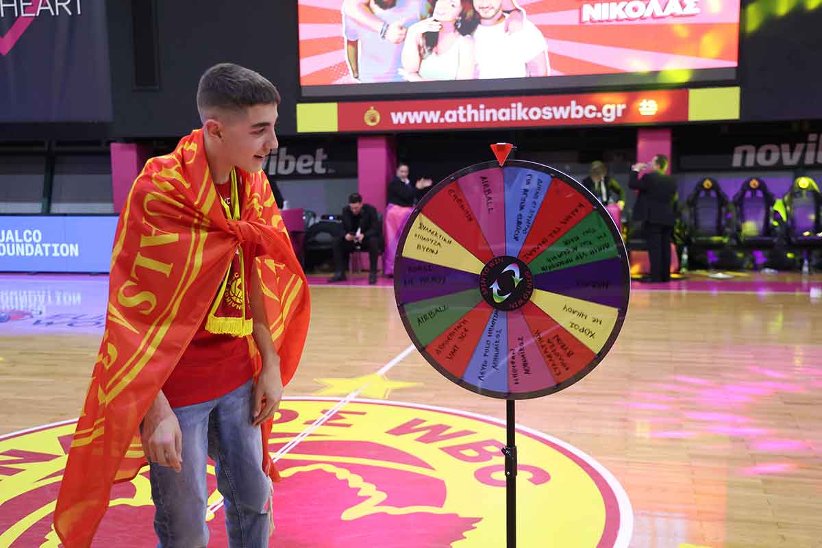 Για πρώτη φορά στη φετινή σεζόν, και πρώτη από τις πολλές που ελπίζουμε να έρθουν στο μέλλον, ο τροχός της τύχης εμφανίστηκε στο κλειστό D. Kaltsas Byron Arena. Οι δύο τυχεροί που βρήκαν τις χριστουγεννιάτικες μπάλες ήταν ο Νικόλας και η Δήμητρα, οι οποίοι συμπτωματικά κέρδισαν και το ίδιο δώρο. Μια συλλεκτική μπλούζα Byron, την οποία και παρέλαβαν ενθουσιασμένοι. Η μικρή μας Δήμητρα, μάλιστα, παρέλαβε μετά από καιρό τα χρωστούμενα, και ντύθηκε με τη φανέλα της Μαριέλλας Φασούλα.