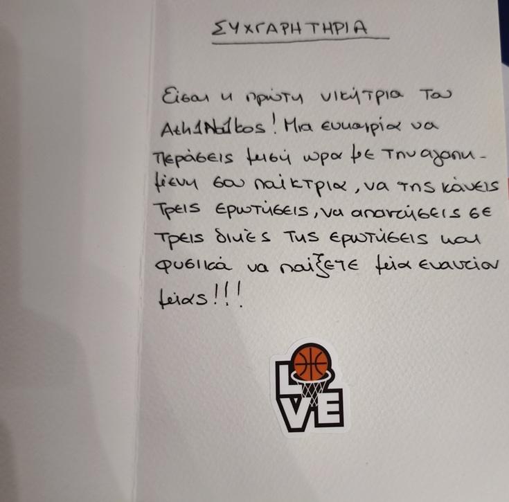 Η Κωνσταντίνα κέρδισε! Πήρε μια τσαντούλα του Eurocup, την οποία όπως ξεκάθαρα θα δείτε και στις φωτογραφίες γλυκοκοιτούσε η MiLady, πήρε ένα κρεμαστό της διοργάνωσης για τα κλειδιά και πήρε και ένα δώρο έκπληξη! Αυτό το δώρο έκπληξη, το οποίο βλέπετε στη φωτογραφία, πρεσβεύει όλα όσα θέλουμε να είναι ο Αθηναϊκός! Μια μεγάλη οικογένεια, μια κοινότητα στην οποία το γυναικείο τμήμα όσο ψηλά κι αν κοιτάζει ή όσο ψηλά κι αν φτάνει, δε θα είναι ποτέ αποκομμένο από τα απλά πράγματα – από τα σημαντικά πράγματα.